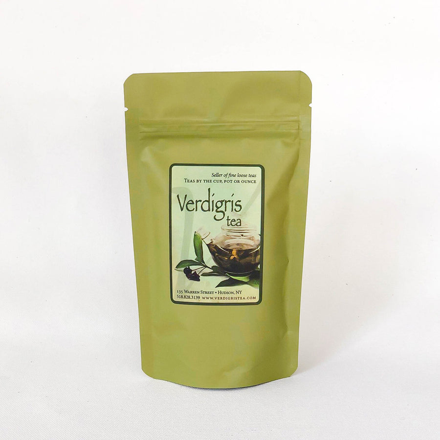 Green tea, orange peel, cinnamon, ginger, senna, cacao nibs, fennel, pomegranate arils, and natural flavor. Description: A wellness tea with some green tea to help the body rid of toxins with a gentle laxitive effect. Contains some caffeine.